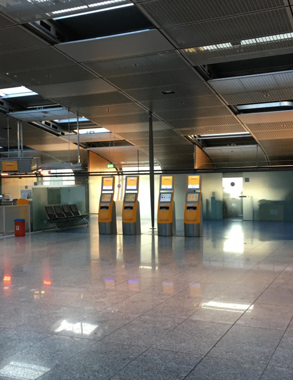 그럼 프랑크푸르트 공항 들어가기전에 힐끗 보이는 아래 사진에서 보이는 기계를 확인 할수 있다. 여기서 한국에서 비행기 셀프발권하듯이 하면 된다.