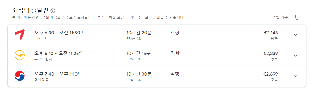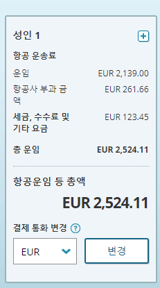 | 운임+항공사부과금 할인 적용 | 2139 | 261.66 | 123.45 | 2524.11 | 2284 | 2236 | 2164 |