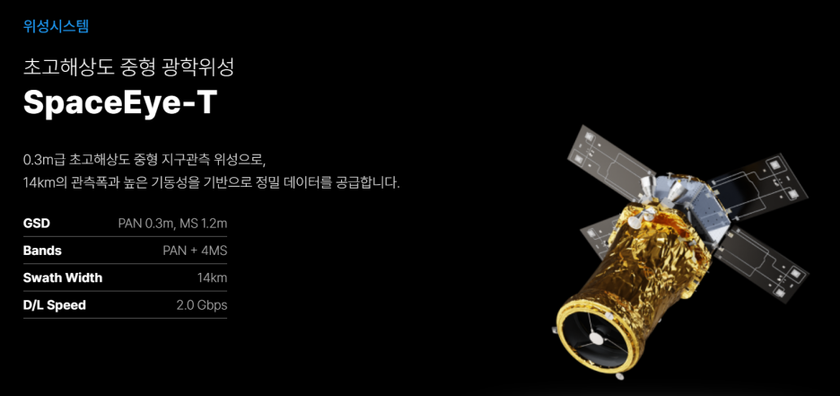 - 세계 최고 해상도 상용 지구관측 위성 기술 보유.