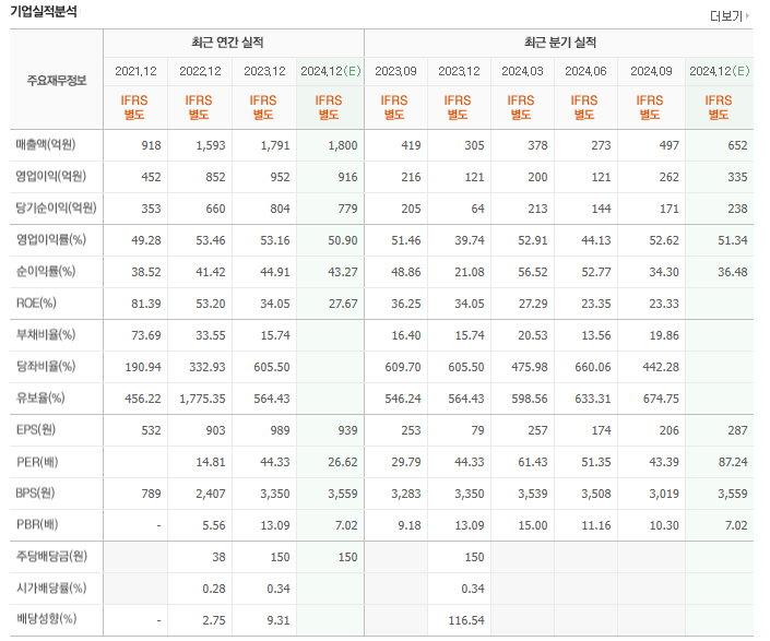 이 데이터를 보면 HPSP는 매출과 순이익이 꾸준히 증가할 것으로 예상되며, 부채보다 현금 및 단기 투자자산이 더 많은 상태임을 알 수 있음
