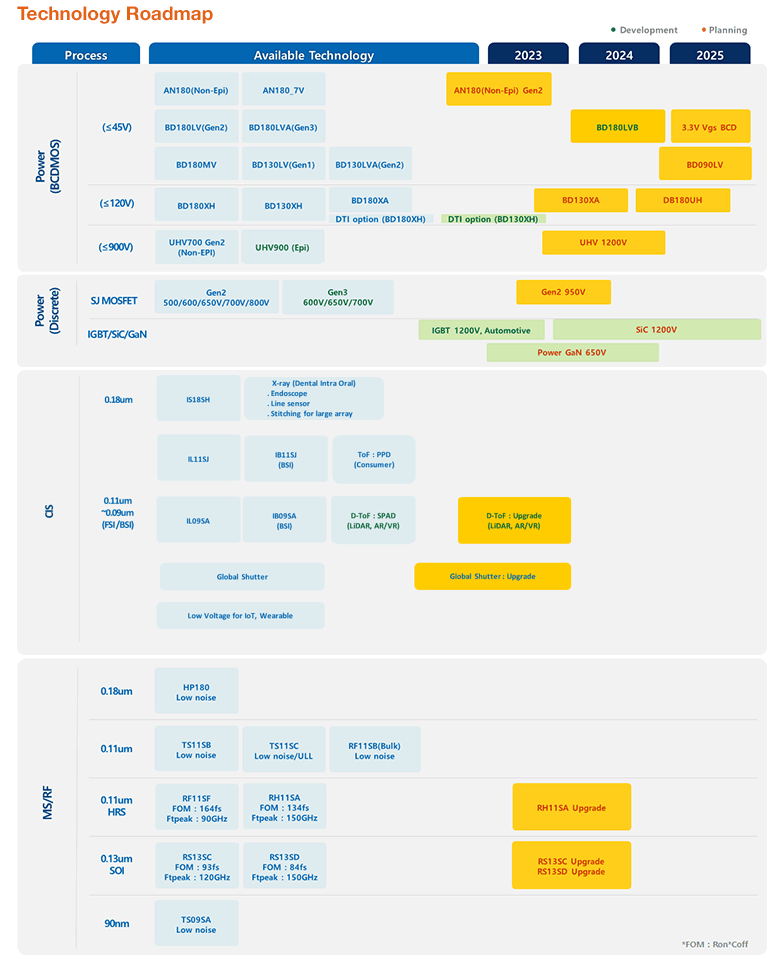 DB하이텍의 주요 제품은 아날로그 칩, 디스플레이 드라이버 IC(DDI), 전력 관리 IC, 오디오 증폭기, 센서 등이 포함됨. 기술적으로는 BCDMOS, 아날로그 CMOS, 비휘발성 메모리(NVM), CMOS 이미지 센서(CIS), 고전압 CMOS 등이 핵심임. 이러한 기술은 모바일 기기, 드론, 의료 기기, 자동차 응용 분야에 사용되며, 공정 노드는 90nm에서 0.35um까지 지원함. 특히, 최근에는 SPAD(Single Photon Avalanche Diode) 기술을 개발하여 LiDAR 및 ToF(Time of Flight) 응용 분야에 활용되고 있음.